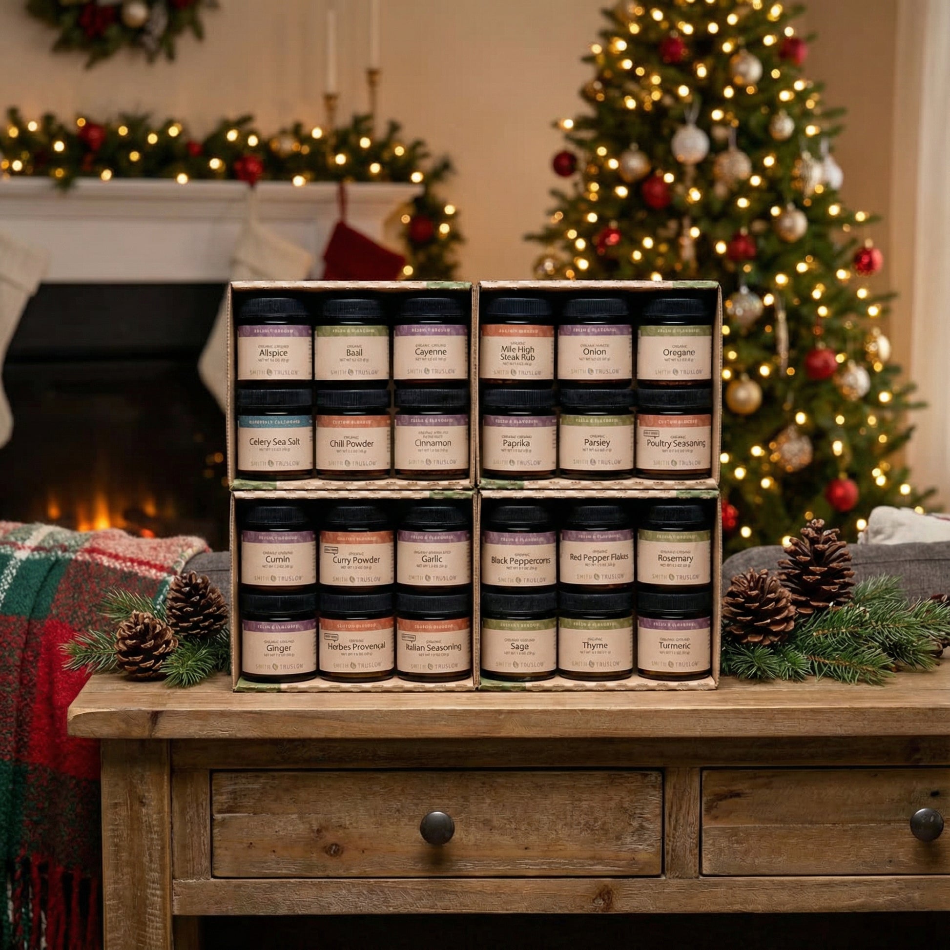 A bouquet of exquisite beauty and aroma that the bride won’t be throwing over her shoulder. This one’s a keeper, a 24-jar starter spice set. Essential spices to get the couple started on a flavorful journey. Earthy notes of cumin, parsley and oregano, sweetened by cinnamon and tempered with sage. We add rosemary for remembrance, curry for complexity. And, plenty of freshly ground peppers and chili powder to keep the fires burning. As organic and fresh as the newly hitched couple!